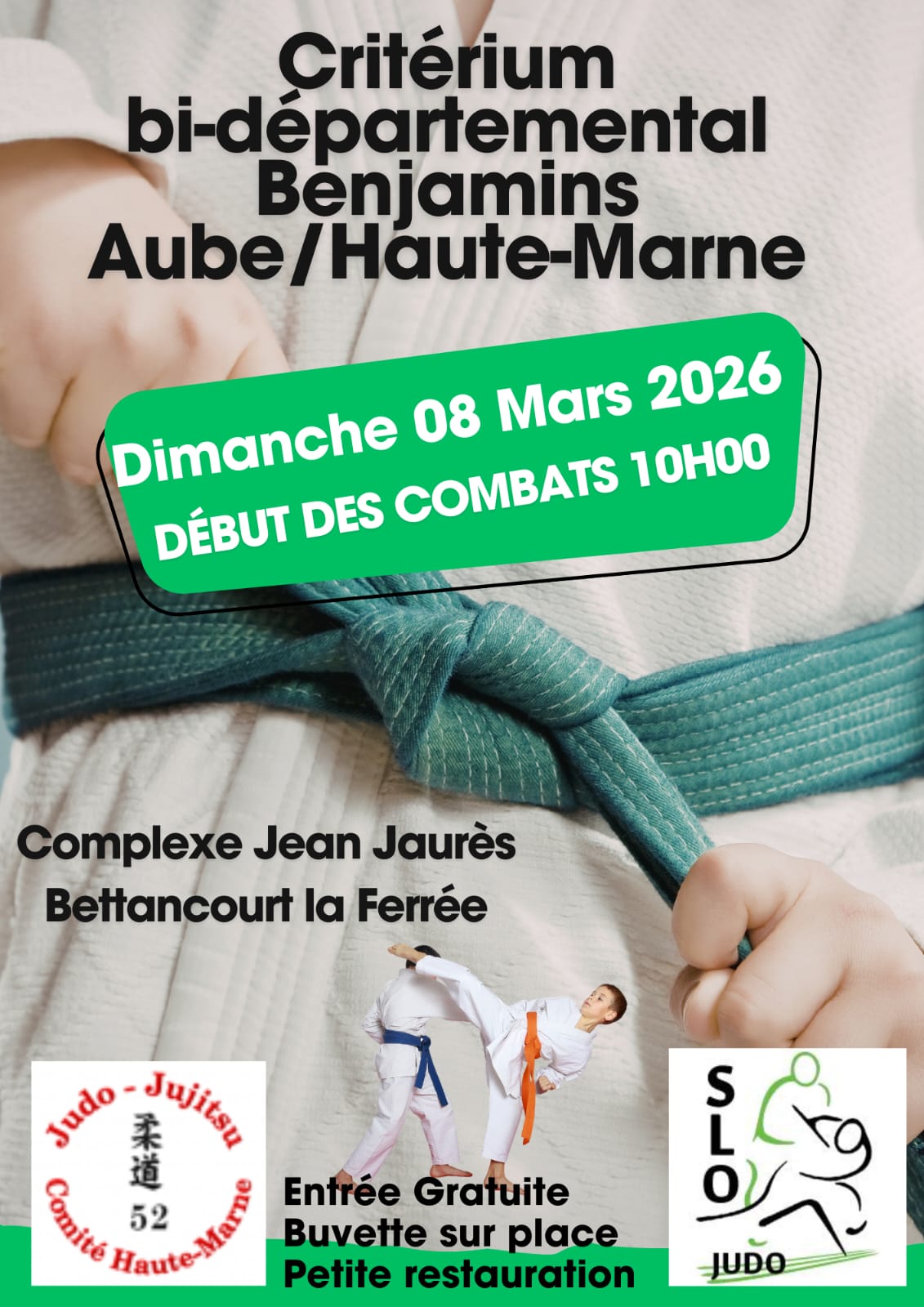Jeudi : *17h45 à 18h45, judo ( veste judo + ceinture) avec Jérémy, lieu : devant la salle des fêtes de Valcourt. Baby judo+mini poussins.